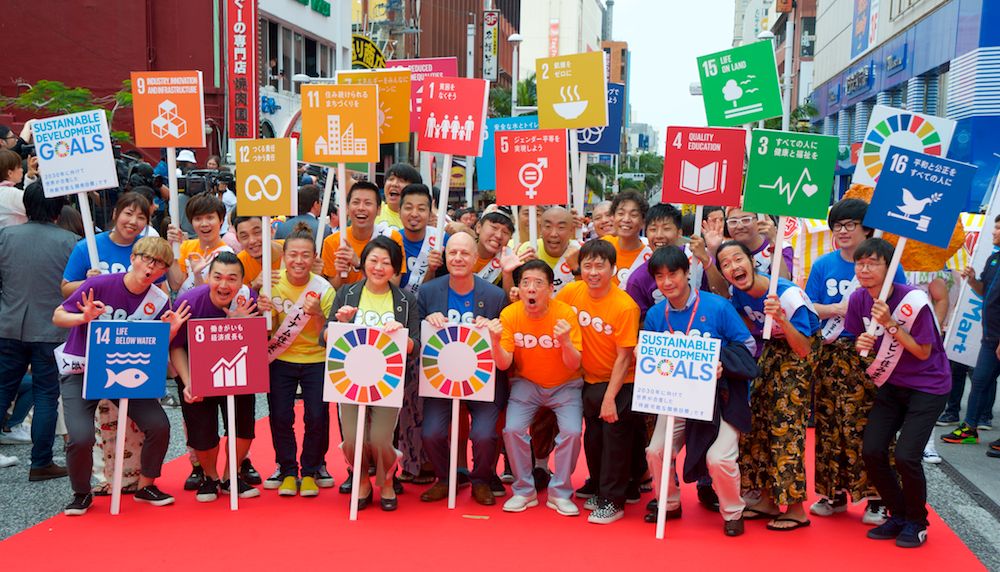 The Jimot CM Awards were given to the best 30-second films presenting one or more of the United Nation’s 17 Sustainable Development Goals in a specific locale. The winner in the Okinawa section was a video from Uruma City, which is about a local leader who teaches children about the importance of life. The prize for all other regions of Japan went to a video from Hiroshima City that introduces a restaurant owner who has spent decades cooking free nutritious meals for kids. Top honors in the international sections went to HPN3, a Yoshimoto comedy group based in the Philippines, where they made a video showing that humans don’t mind throwing trash in the oceans where fish eat, but wouldn’t like it if people threw garbage into their food.