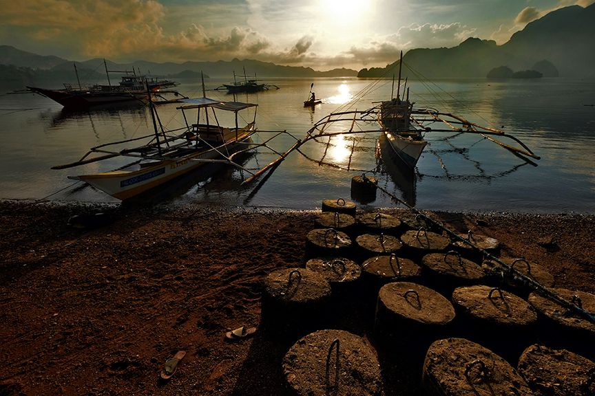 During the Coron island and islets tour, we hiked up the mountain access to Kiangan Lake, said to be the cleanest lake, with most pristine waters, in the country and swam the narrow passageway to the Twin Lagoon. In both places, I and my shooter friends could not help but finish our shooting immediately so we could all jump into the cool waters and enjoy the unique experience. Lunch was at a secluded beach (Camp Carabao), where the group had a generous helping of grilled seafoods and was treated to a sneak view of simple Tagbanua life - an elderly strumming his ukelele to sing a tribal song; his daughter weaving, and a son roasting coffee. The day was capped with sunset shooting at the jetty. After soaking in the island hopping adventure, we returned to the town port enveloped by the warm glow of a crepuscular sunset, glorious in its multiple hues of yellow to purple.