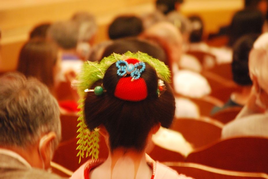 The purpose of my visit this time was to watch the “Gokagai” - Kyoto Five Hanamachi joint performance, a rare performance of traditional dance by geiko and maiko who belong to Kyoto’s most famed five Hanamachi houses. Dating back to the year 1600, the two-hour performance was held at the 400-year-old Minami za, an ornate theater and another legacy of Kyoto. The dancers in summer silk kimonos moved gracefully to classical songs played on the Shamisen and sung by another group of geiko.