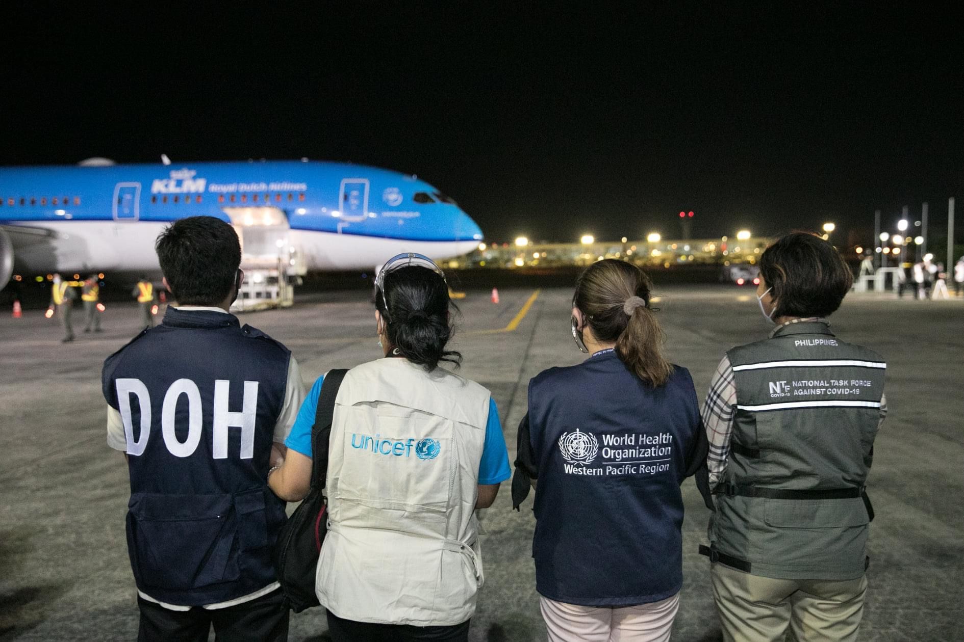 President Rodrigo Duterte, officials from the Philippines’ Inter-Agency Task Force on the Management of Emerging Infectious Diseases (IATF), Department of Health (DOH), World Health Organization (WHO) and UNICEF Philippines received the vaccine at the Ninoy Aquino International Airport.